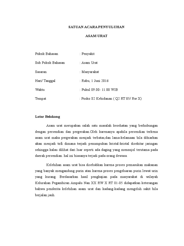 Kadar asam urat normal pada pria dan perempuan berbeda. kadar asam asam urat pdf bab 2 urat normal pada pria berkisar 3,5 7 mg/dl dan pada perempuan 2,6 6 mg/dl. kadar asam urat diatas normal disebut hiperurisemia. asam urat cenderung dialami pria karena perempuan mempunyai hormon estrogen yang ikut membantu pembuangan asam urat lewat urine. sementara pada. Bab2 tinjauan pustaka. 2. 1 asam urat. 2. 1. 1 defenisi. asam urat adalah hasil akhir dari katabolisme (pemecahan) purin. purin adalah salah satu kelompok struktur kimia pembentuk dna (gambar 2. 1). yang termasuk kelompok purin adalah adenosin dan guanosin. saat dna dihancurkan, purin pun akan dikatabolisme. hasil akhirnya berupa asam urat.